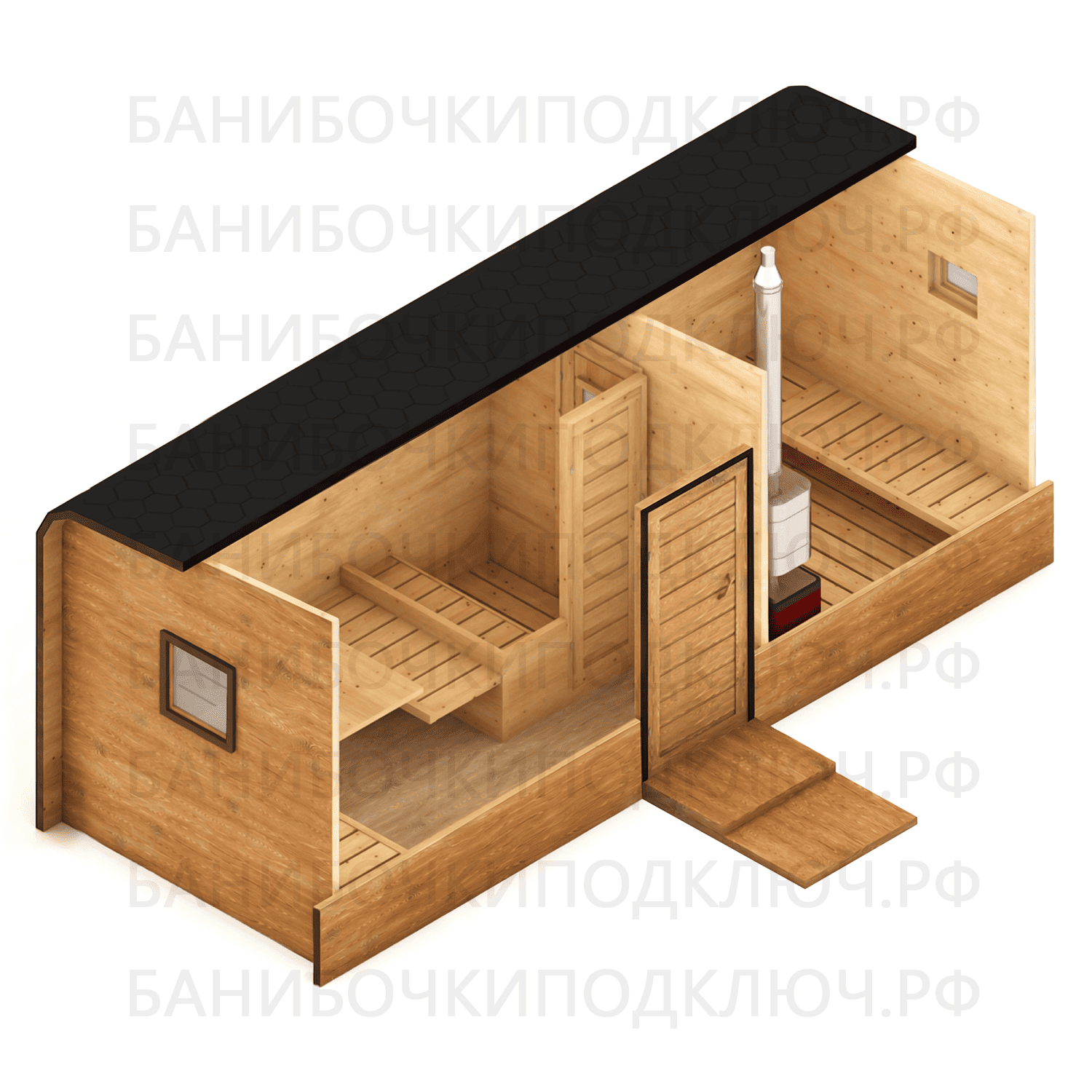 Баня парус 6 x 2,3 м с проходной мойкой